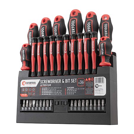 INTERTOOL Magnetic Screwdriver Set with Mountable Rack Stand, Precision Screw Drivers, Stubby, Bits 36pc - Impact S2 Steel -Flat,Phillips,Pozidriv,Torx, Hex, Square, $14.99, Amazon