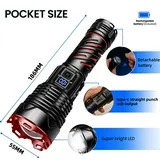 | Product Description: | đĽđŚđĄLight Up Your World with Unmatched Power & PrecisionďźIf you are looking for a high quality and very durable flashlight, yes this is it, the true king of the outdoors!đĽđŚđĄ Meet the ultimate companion for adventurers, preppers, and everyday heroesâthe High Lumens Rechargeable Flashlight. Built with aerospace-grade aluminum alloy and engineered for relentless performance, this compact powerhouse redefines what a flashlight can do. Whether youâre navigating a dark trail, weathering a storm, or tackling a home project, its cutting-edge design and smart features ensure youâre always prepared. Designed to Impress Elevate your gear with sleek, tactical styling accented by bold blue racing stripesâa head-turning detail that shouts premium quality. Packaged as a ready-to-gift box, itâs the ultimate present for outdoorsy dads, safety-conscious partners, or anyone who demands reliability. Be Prepared for Anything From backyard BBQs to hurricane prep kits, this flashlight adapts to your life. Its compact size fits in glove compartments, backpacks, or emergency kits, while its overcharge-protected battery and military-grade durability ensure itâs ready when disaster strikes. Perfect For: â˘â