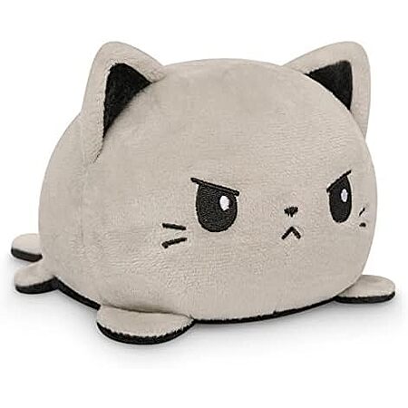 Model: TeeTurtle - The Original Reversible Cat Plushie - Black + Gray - Cute Sensory Fidget Stuffed Animals That Show Your Mood