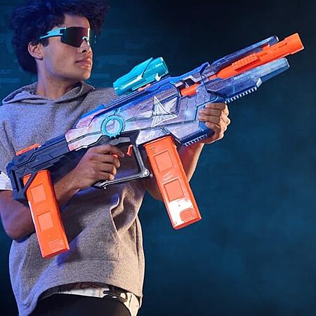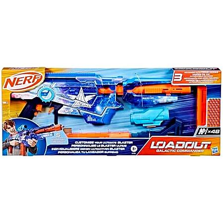 $28.98 | Nerf Loadout Galactic Commander Motorized Blaster, 3 Firing Modes, 3 Attachment Accessories, 48 Nerf N1 Darts at Amazon
