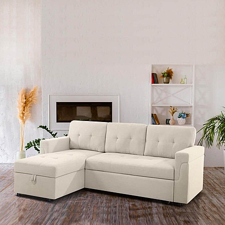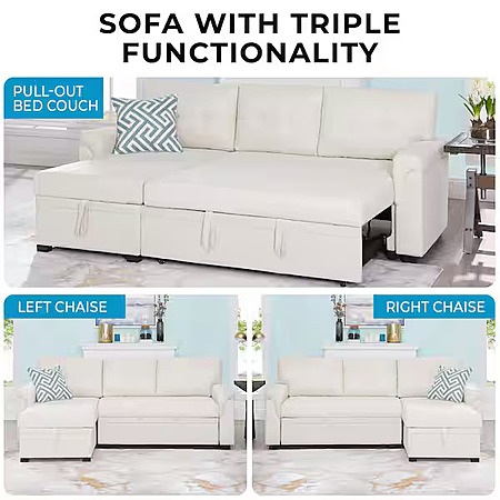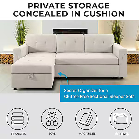 85" Homestock Square Arm Velvet L-Shaped Sofa w/ Reversible Chaise & Pull-Out Sleeper Bed (Cream Velvet) $357.13 + Free Shipping