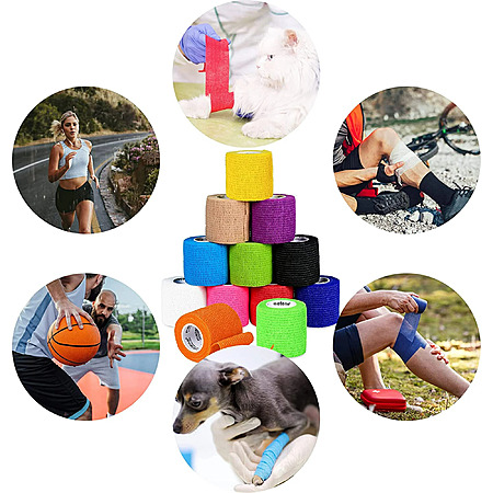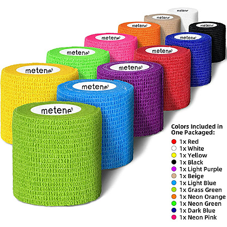 Metene Adhesive Bandages 12 Pack, Athletic Tape 2 inches x 5 Yards (Rainbow) $8.99