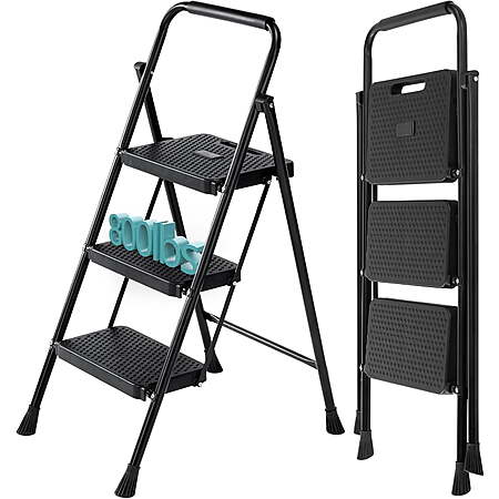 CONCETTA via Walmart.com has CONCETTA 36 Inch Iron Stepstool, 2 Folding Stepstool with Non-Slip Pedals and Comfortable Handrails, Sturdy Steel Ladder Portable Heavy Duty Stepstool for Kitchen, Garage and Outdoor Use, Black on sale for $26.99.
