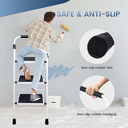 $26.99*:CONCETTA 36" Iron 3-Step Folding Step Stool – Heavy-Duty Steel Ladder with Handrails, Black at Walmart.com