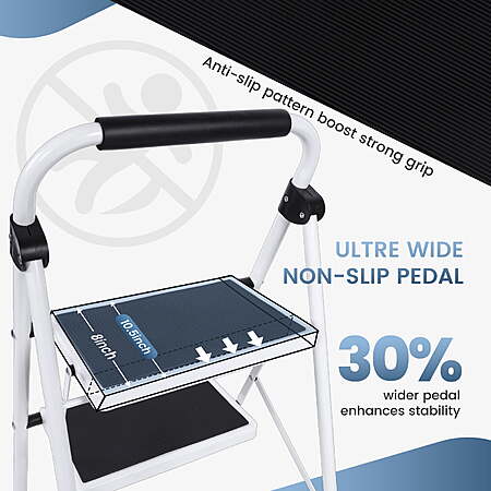 Model: CONCETTA 36 Inch Iron Stepstool, 2 Folding Stepstool with Non-Slip Pedals and Comfortable Handrails, Sturdy Steel Ladder Portable Heavy Duty Stepstool for Kitchen, Garage and Outdoor Use, Black