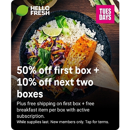 Hello Fresh: 50% off first box + 10% off next two boxes