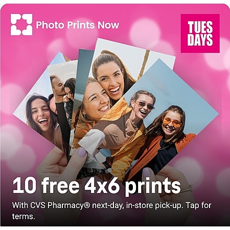 Photo Prints Now: 10 free 4x6 prints with CVS Pharmacy next-day, in-store pick-up