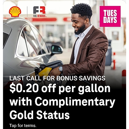 0.20 off per gallon with Complimentary Gold Status