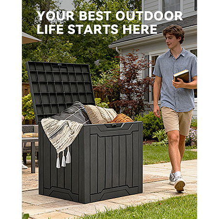 YITAHOME 32 Gallon Rattan Deck Box $21.24 + Free shipping w/Prime