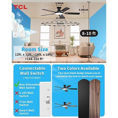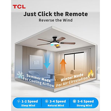 TCL VERY LIGHTING via Amazon[amazon.com] has 52" TCL Modern Low Profile 6-Speed Ceiling Fan w/ 3 Mode LED Light on sale for $119.99 - 42% off when you enter the coupon code 8AE2J7LX =$69.59. Shipping is free.