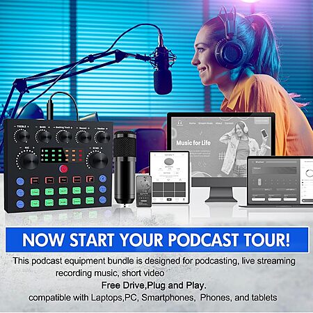 ALSO GO Podcast Equipment Bundle for 2 w/ BM-800 Microphones & V8s Sound Card $38.55 + Free Shipping