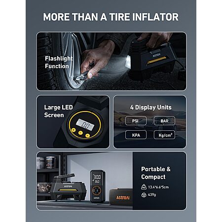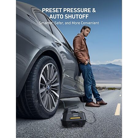 Model: AstroAI Tire Inflator Portable Air Compressor Tire Air Pump for Car Tires - Car Accessories, 12V DC Auto Pump with Digital Pressure Gauge, Emergency LED Light for Bicycle, Balloons, Yellow