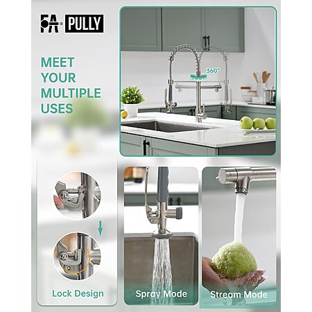 Fapully Commercial Pull Down Kitchen Sink Faucet with Sprayer Brushed Nickel $86.38