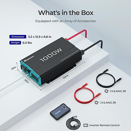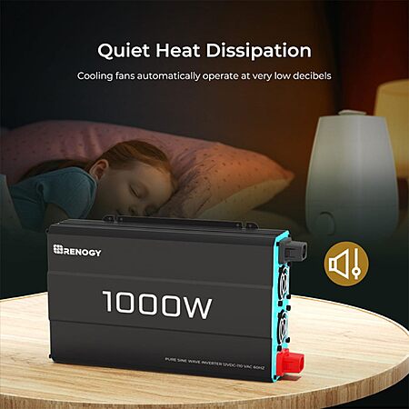 Model: Renogy 1000W Pure Sine Wave Inverter 12V DC to 120V AC Converter for Home, RV, Truck, Off-Grid Solar Power 110V with Built-in 5V/2.1A USB Port, Hardwire Remote Controller