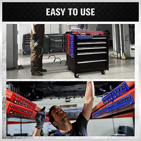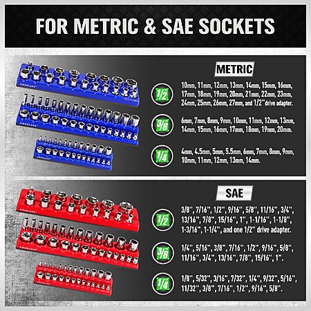 Magnetic Socket Organizer Set, 6PCS Socket Holder, 1/4", 3/8", 1/2" Sockets Holds 143 Pieces Magnetic Sockets Trays (Blue&red, 6 Pcs) $37.99
