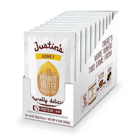 10-Pack 1.15-Oz Justin's Peanut Butter Squeeze Packs (Honey) $7.22 w/S&S + Free Shipping w/ Prime or on $35+