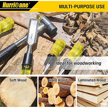 • Ergonomic PVC Handle: HURRICANE wood chisel set with Lightweight yet durable regular size impact PVC Handle, feels natural in your hand for everyday fixes, yet tough enough for mallet strikes—great for door locks or DIY use