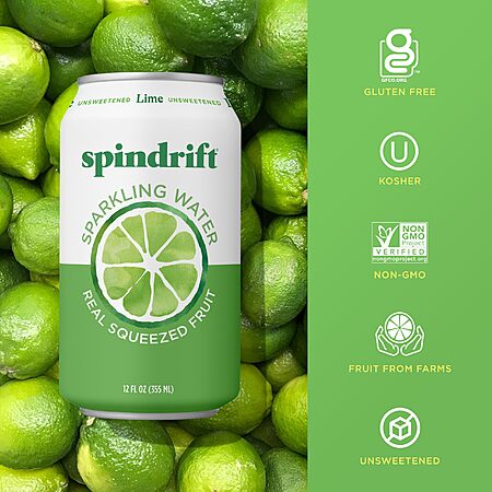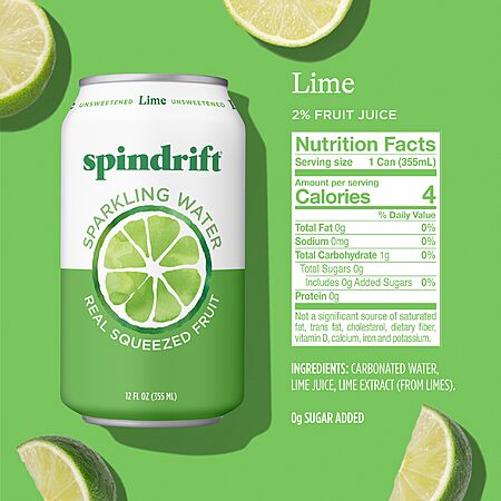 Model: Spindrift Sparkling Water, Lime Flavored, Made with Real Squeezed Fruit, 12 Fl Oz Cans, Pack of 24 (Only 4 Calories per Can)