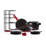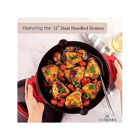Woot! has Cuisinel Cast Iron 17-Piece Preseasoned Cookware Set - 8"+10" Skillets + Lids + 5-Quart Dutch Oven + 12" Braiser with Cast Iron Lid + Round Griddle + 15" Organizer Rack + Pan Scraper + Silicone Handle on sale for $83.48.