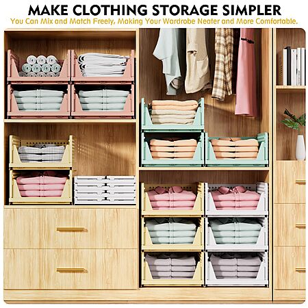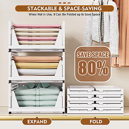 Model: SNSLXH 5 Pack Stackable Closet Storage Basket, Multifunctional & Foldable Closet Organizer for Bathroom Kitchen Laundry Room Wardrobe Storage, Space-Saving Clothes Storage Drawer Organizer, White
