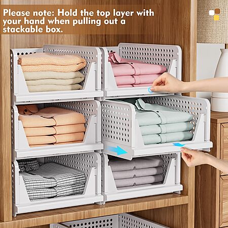 [Prime]$32*:5-Pack SNSLXH Stackable Multifunctional & Foldable Closet Storage Basket at Amazon