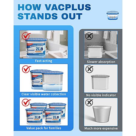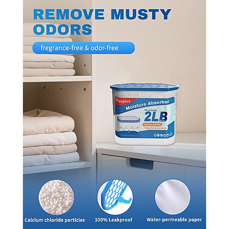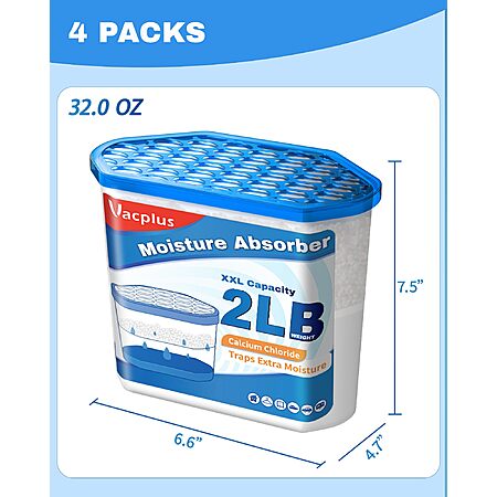 Vacplus Moisture Absorber Buckets – Large Capacity Dehumidifier and Humidity Absorber for Closet, Basement, Bathroom, RV, and Storage Areas, Unscented, 2 lbs, 4 Pack $25.98