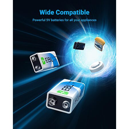 EBL 9V Batteries 8 Pack, Alkaline Power 9 Volt Battery with 7-Year Shelf Life Long-Lasting Batteries for Smoke Detector, Electronics Device $7.98