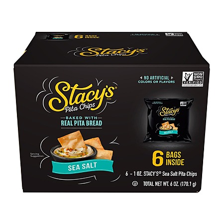 Model: Stacy’s Pita Chips, Sea Salt, No Artificial Colors or Flavors, 1 Oz (Pack of 6)