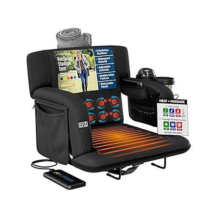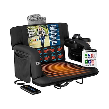 Woot! has Alpcour Heated Massage Reclining Stadium Seat for Bleachers – Wide Bleacher Chair with Back Support and Cushion, Armrests, Large Pockets, and Multiple Safety Features – Best Stadium Seats Chairs on sale from $69.99.