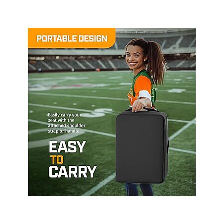 - PORTABLE & LIGHTWEIGHT – Weighing less than 1 pound, this bleacher seat cushion features a carry handle and safety straps that double as shoulder straps, making it perfect for football seats for bleachers or travel.