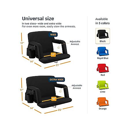 - ENJOY IN COMFORT - Take your adventure to the next level with these Stadium Seats with Back Support with Comfortable Armrests that fold down for wider space, and Large Pockets to keep your essentials near you.