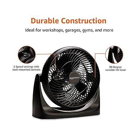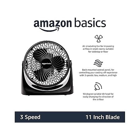 $8.99*:Amazon Basics Air Circulator Desk Fan – 3 Speeds, 90° Tilt, 70W, Black at Woot!