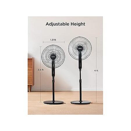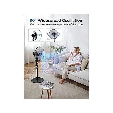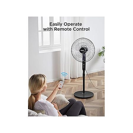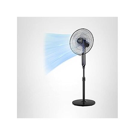 $19.99*:PELONIS 16" Oscillating Pedestal Fan – DC Motor, 12 Speeds, Remote, 12H Timer, Black at Woot!