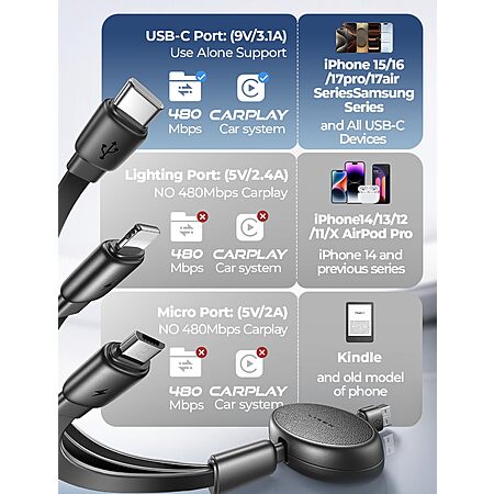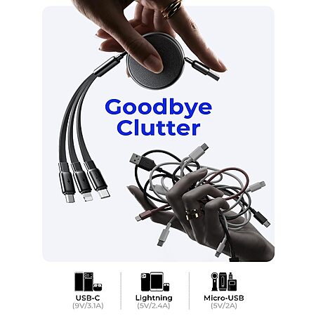 Lisen 3-in-1 USB-C/Lightning/microUSB Retractable Charging Cable (Black) $5.99 + Free Shipping w/ Prime or on $35+
