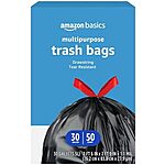 50-Count Amazon Basics 30-Gallon Multipurpose Drawstring Trash Bags on sale for $9.77 - $2.44 when you