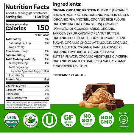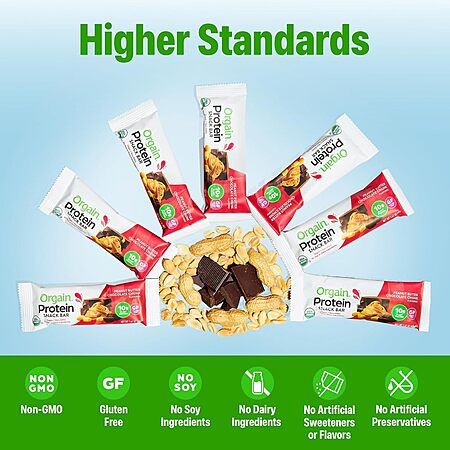 12-Pack Orgain Organic Protein Snack Bars (Peanut Butter Chocolate Chunk) $9.59 w/ S&S + Free Shipping w/ Prime or on $35+