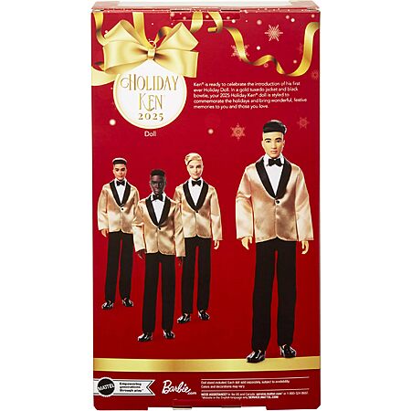 Barbie 2025 Holiday Ken Doll (Black Hair w/ Golden Jacket) $12.96 + Free Shipping w/ Prime or on $35+