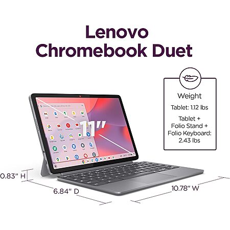ALWAYS READY TO GO – With its perfectly portable size, folio keyboard, and all-day battery life, the lightweight Lenovo Chromebook Duet is ready for anything you throw at it.