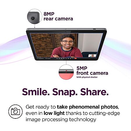 SMILE, SNAP, SHARE - Get ready to take phenomenal photos, even in low light thanks to cutting-edge image processing technology. The front camera comes with a physical shutter to ensure your video calls capture every detail, while keeping your privacy at your fingertips.