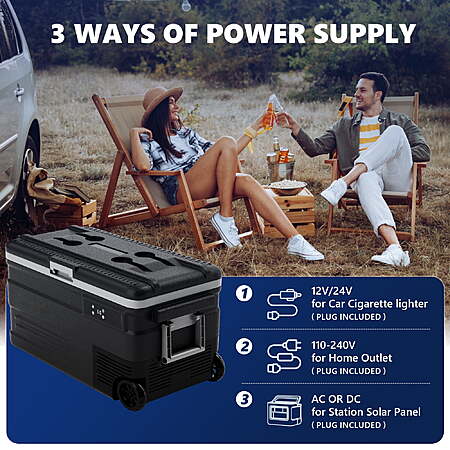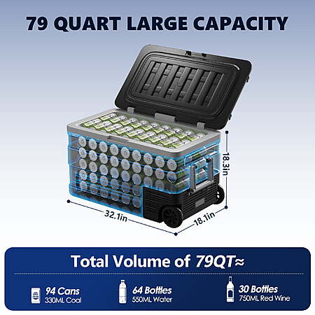 Simzlife 12 Volt Car Refrigerator, 80QT(75L) Portable RV Car Fridge with Wheels, 0℉~68℉, 12/24V DC & 110-240V AC, Black $289.99