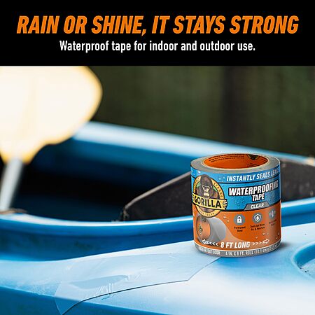 Gorilla Waterproof Patch & Seal Tape, Clear Tape, 4" x 8' - $12.97 or less with S&S