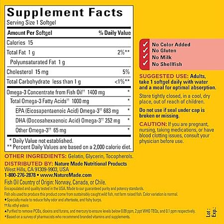 Model: Nature Made Burp Less Ultra Omega 3 Fish Oil Softgels - 1400mg, 90 ct