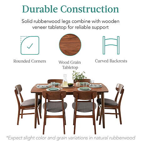 • Durable Build: Constructed for longevity, the dining set boasts a wood grain veneer finish, smooth rounded table