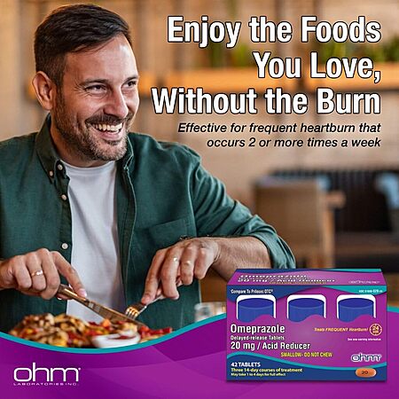 Ohm Omeprazole Delayed-Release Tablets, 20mg Acid Reducer, Treats Frequent Heartburn (12 Weeks of Supply, 84, Count) $13.51