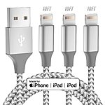 3-Pack 10' Bkayp Apple MFi Certified USB to Lightning Charging Cables