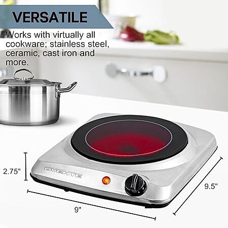 $17.17* | OVENTE 7” Ceramic Glass Infrared Single Burner 1000W Electric Hot Plate at Amazon