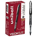 Pack of 12 Uni-Ball Vision Elite Rollerball Pens Fine Point Micro Tip, 0.5mm, Black, 12 Count $107.88