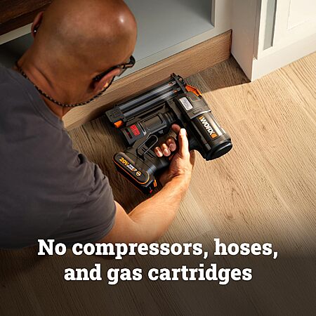 WORX Brad Nailer Cordless, 20V 18 ga Brushless Nail Gun Cordless, Up to 2-⅛" into Hardwood, Narrow Nose, 3 LEDs, 3000 Nails & 20V 2.0 Ah Battery and Charger Included $139.48