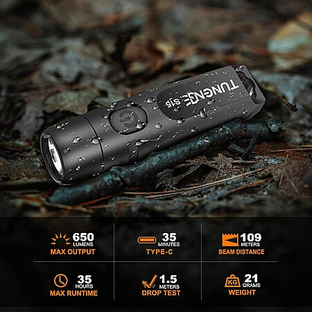 Tunenge via Amazon[amazon.com] has for Prime Members: TUNENGE S15 Rechargeable 650 Lumen Keychain Flashlight on sale from $17.29 - 40% off when you visit the promo code page to activate[amazon.com] (or apply promo code GEWVFNQX at checkout) = from $10.37. Shipping is free with Prime or on $35+ orders.
