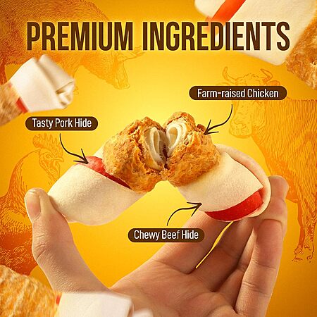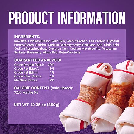 5-Count 5" Petphabet Rawhide Knotted Bone Dog Chew Treats w/ Meat (Chicken Flavor, for Medium & Large Dogs) $7.73 + Free Shipping w/ Prime or on $35+
